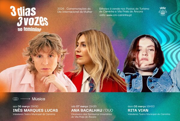 👧🏽A Câmara Municipal de Caminha vai comemorar o Dia Internacional da Mulher com a iniciativa “3 dias, 3 vozes no feminino”, em Caminha e Vila Praia de Âncora, nos dias 6, 7 e 8 de março. 📅6 de março/21:30 Inês Marques Lucas Valadares, Teatro Municipal de Caminha 📅7 de ...