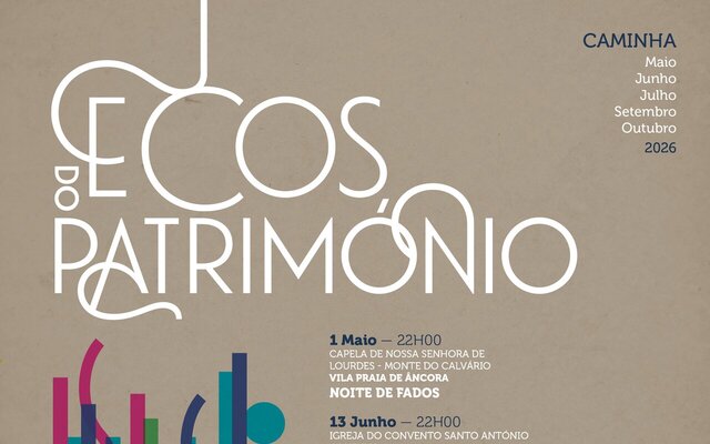 Ecos do Património | Caminha 2026 A Câmara Municipal de Caminha promove entre 1 de maio e 3 de outubro de 2026 o projeto ECOS DO PATRIMÓNIO, um ciclo de 6 concertos com o objetivo de promover o património histórico e patrimonial do concelho de Caminha. Os locais escolhidos ...
