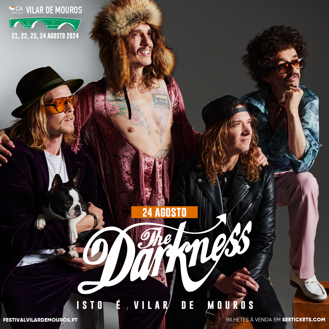 Nome incontornável do rock britânico, The Darkness são detentores de inúmeros sucessos como “I Believe In A Thing Called Love”, “Growing On Me”, “Get Your Hands Off My Woman”, “Love Is Only A Feeling” ou “One Way Ticket”. Os seus álbuns “Permission to Land” (2003) - que rendeu a The Darkness três Brit Awards, Melhor Grupo Inglês, Melhor Banda de Rock e Melhor Disco -, “One Way Ticket to Hell... and Back” (2005), “Hot Cakes” (2012), “Last of Our Kind” (2015), “Pinewood Smile” (2017) e “Easter Is Cancelled” (2019) receberam elogios tanto da crítica como do público, criando uma legião fiel de fãs. A banda actua no dia 24 de Agosto.