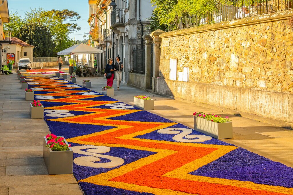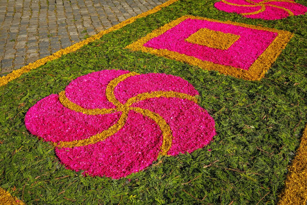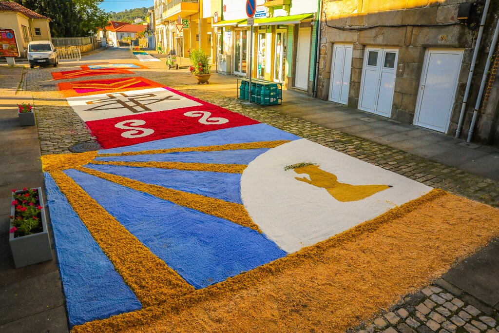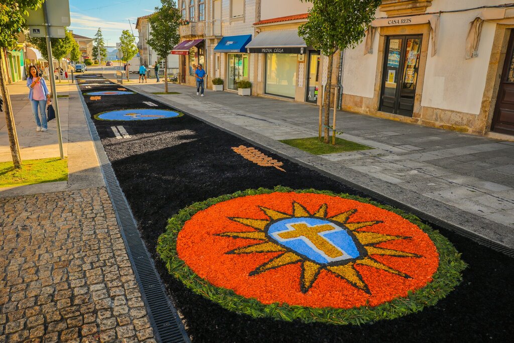Depois de uma noite longa e animada, o dia amanheceu solarengo e, bem cedo, já eram muitas as pessoas que passeavam pelas ruas de Caminha e Vilarelho para admirar os tapetes floridos, uma tradição que marca a 𝐒𝐨𝐥𝐞𝐧𝐢𝐝𝐚𝐝𝐞 𝐝𝐨 𝐂𝐨𝐫𝐩𝐨 𝐝𝐞 𝐃𝐞𝐮𝐬.