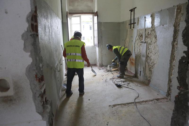 \r\nOs trabalhos estão a ser realizados pelos funcionários do município. Esta intervenção engloba: a demolição de paredes interiores em alvenaria e tetos de madeira e tabique; a remoção de revestimentos cerâmicos; o tamponamento de infraestruturas existentes; o tapamento de vãos; a execução de paredes e tetos em gesso cartonado, com aplicação de lã de rocha; a reparação e adaptação de portas e contras de madeira existentes; a regularização de pavimentos; a aplicação de pavimento flutuante; a execução de rodapés de madeira; a instalação de antecâmara em vidro; a pintura de todas as paredes interiores tetos e carpintarias; a execução de rede elétrica e telecomunicações e a aparelhagem associada e a aplicação de luminárias.
