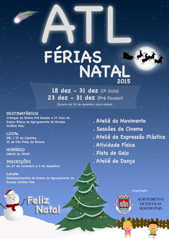\r\nO ATL “Férias de Natal” vai funcionar de 18 a 31 de dezembro. Para além de ser uma forma dos mais novos ocuparem de modo positivo os tempos livres, o ATL é também uma resposta para as famílias caminhenses que trabalham e não têm com quem deixar os filhos nas pausas letivas.