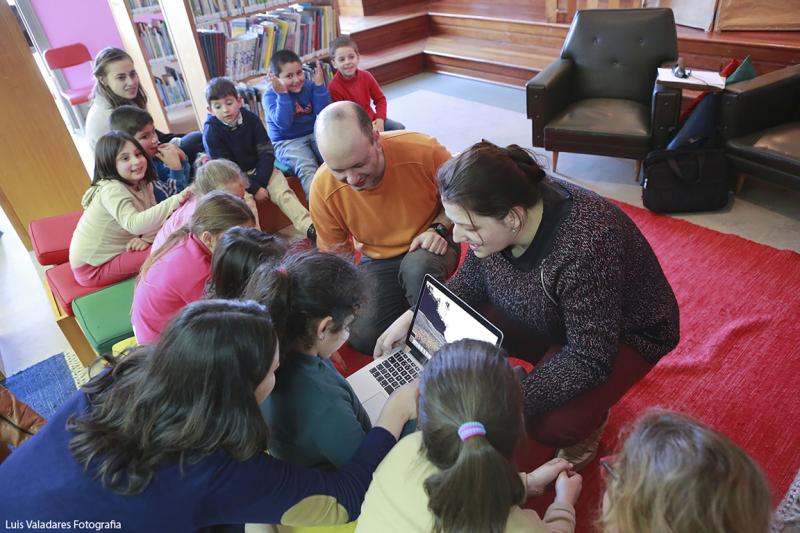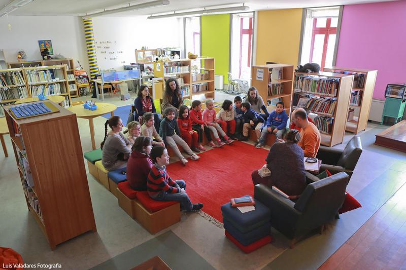 \r\nAssim, com uma dinâmica diferente, o “Conto e Reencontro” está a apresentar até ao dia 14 de abril, a pequena história de Manuel António Pina, “Gigões e Anantes”, que mostra como é possível comunicar e partilhar, sem reservas, mesmo quando há diferenças. Assim, para além de uma história lida a partir de um texto comum, as crianças também escutam a leitura da mesma história escrita em braille. A atividade é complementada com um momento onde as crianças podem aprender a escrever o seu nome próprio em braile.
