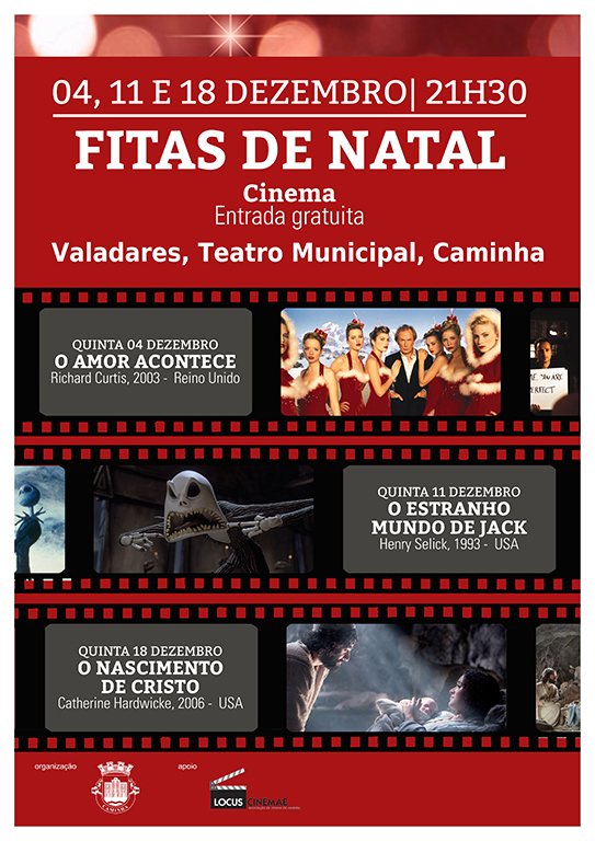\r\nO Fitas de Natal, a nova aposta do Município de Caminha para as noites de quinta-feira, conta com a exibição de três filmes que de algum modo estão relacionados com o Natal: “O Amor Acontece”, “O Estranho Mundo de Jack” e o “O Nascimento de Cristo”.