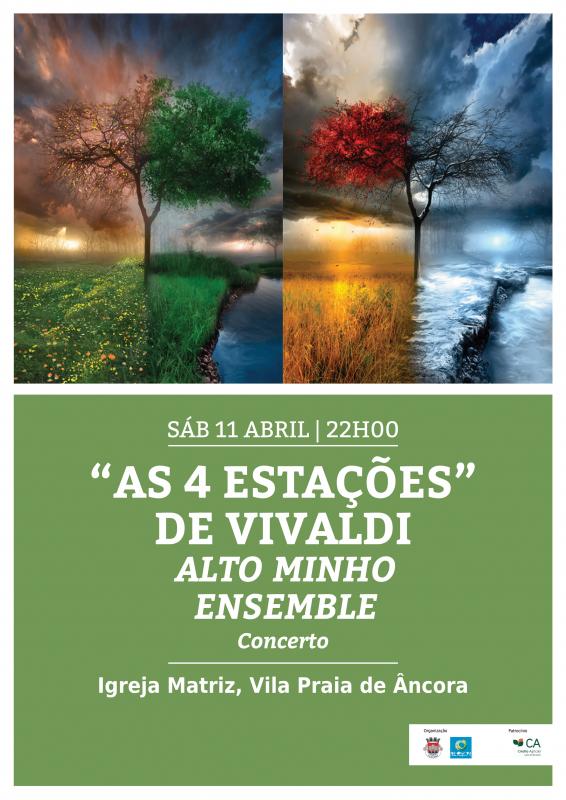 A Igreja Matriz de Vila Praia de Âncora vai acolher um dos concertos do Alto Minho Ensemble – Música & Património “As 4 estações de Vivaldi”, no dia 11 de abril, pelas 22 horas. Trata-se de uma iniciativa da Comunidade Intermunicipal do Alto Minho (CIM Alto Minho) que conta com o apoio do Município de Caminha.