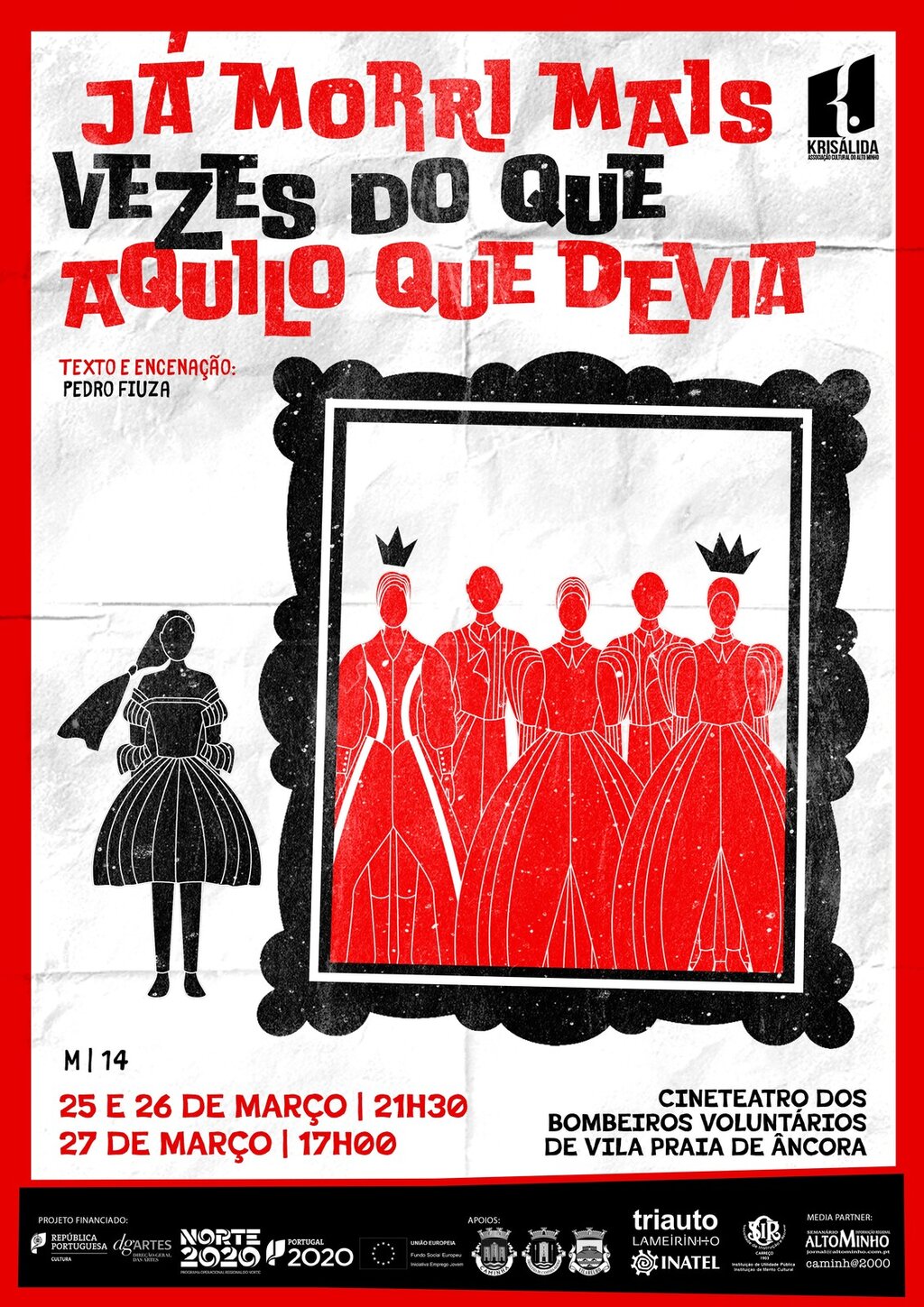 A estreia do espetáculo “Já morri mais vezes do que aquilo que devia” está marcada para 25 de março, pelas 21h30 no Cineteatro dos Bombeiros Voluntários de Vila Praia de Âncora.