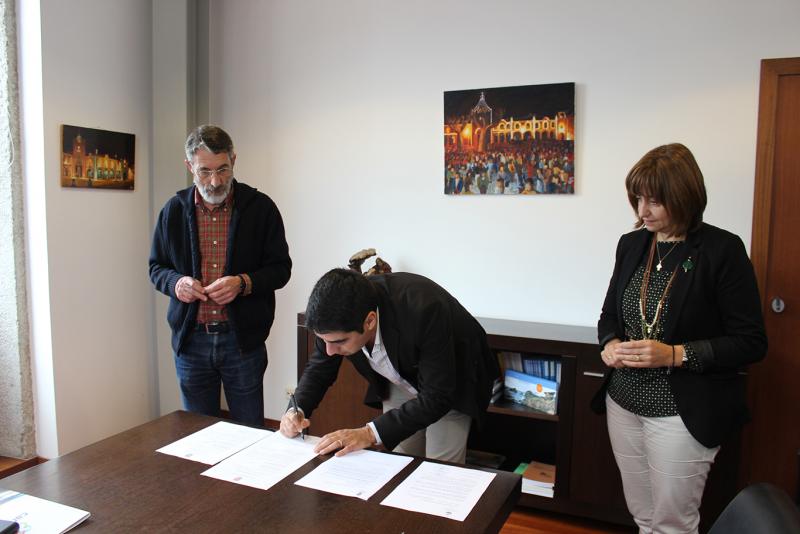 \r\nNuma cerimónia simples, a ata foi assinada por Miguel Alves, presidente da Câmara Municipal de Caminha, Anabela Monteiro, funcionária da Câmara Municipal de Caminha, Maria del Carmen Alonso Alonso, vice-presidente da Câmara Municipal do Rosal, José Manuel Domínguez Freitas, presidente da Câmara Municipal de A Guarda e José Carlos Martinez Crespo, secretário do Gabinete de Atas da Câmara Municipal de A Guarda.