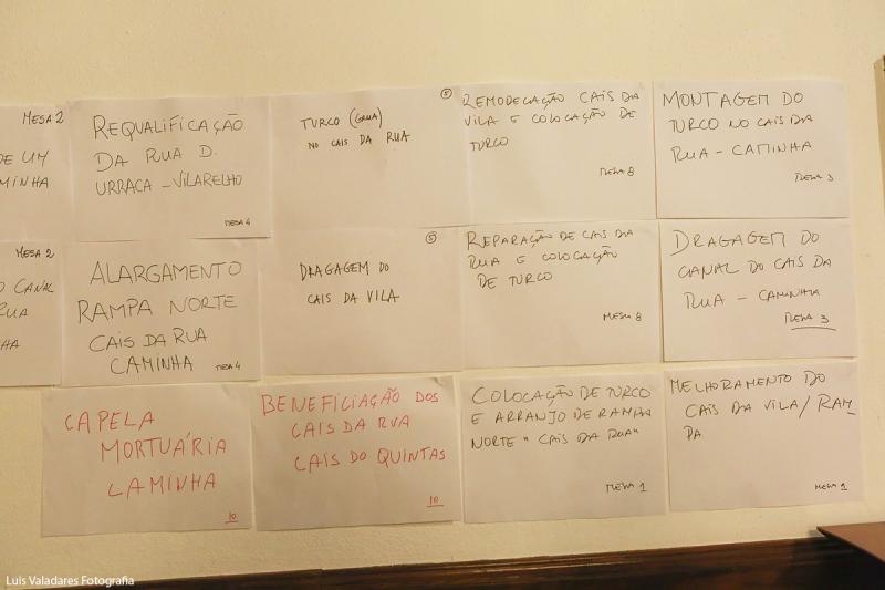 \r\nOntem foram votadas em Plenário segundo a ordem de pontuação, as seguintes propostas: Reparação de Cais da Rua e colocação de Turco (31); Dragagem do canal do Cais da Rua (15); Melhoramento do Cais da Vila / rampa (13); Meia casa como espaço do pescador - Caminha (13); Capela mortuária - Caminha (11); Requalificação da rua D. Urraca - Vilarelho (6); Beneficiação do cais da Rua e do cais do Quintas (5); Eletrificação e água na Foz do Minho "Quintas" (2); Plantação de folhosas na Serra d'Arga (1) e Montagem do turco no Cais da Rua - Caminha (1).