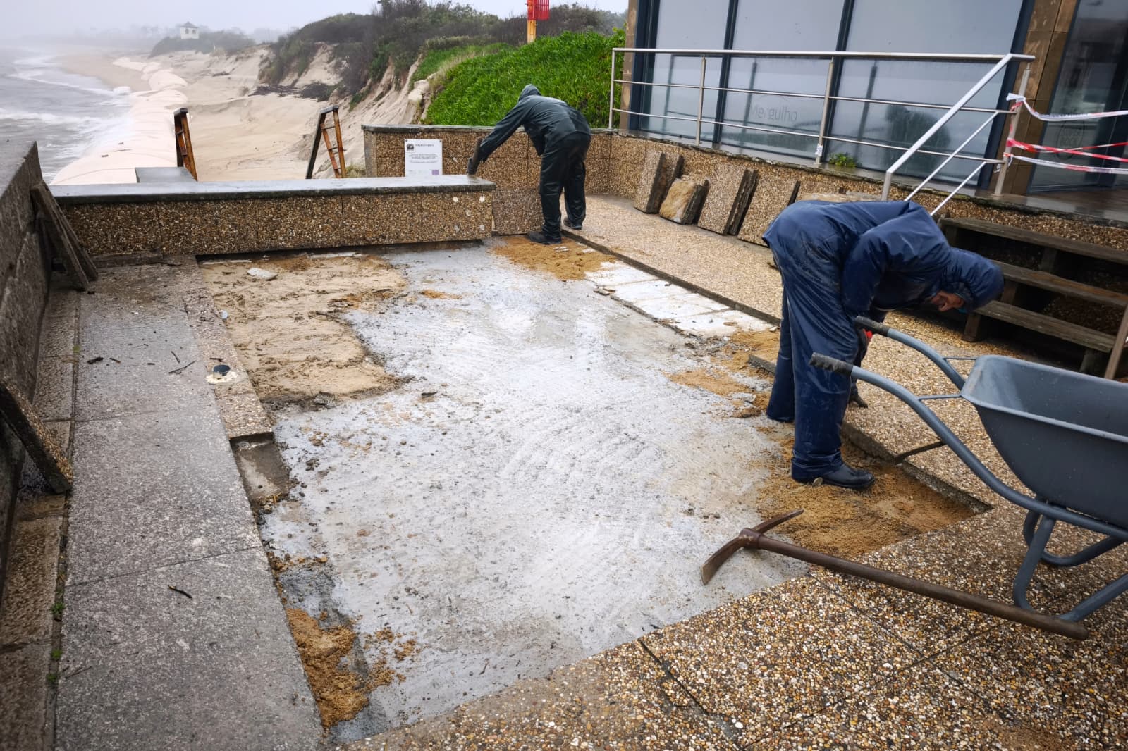 Os trabalhos preparatórios decorreram nesse mesmo dia, tendo a intervenção de engenharia avançado de imediato e ficado concluída a 11 de fevereiro, com a reposição das placas de revestimento do passeio. Esta intervenção permitiu mitigar o risco imediato e reforçar a estabilidade do paredão, prevenindo danos estruturais mais gravosos, sobretudo face ao agravamento do estado do mar previsto para os dias seguintes.