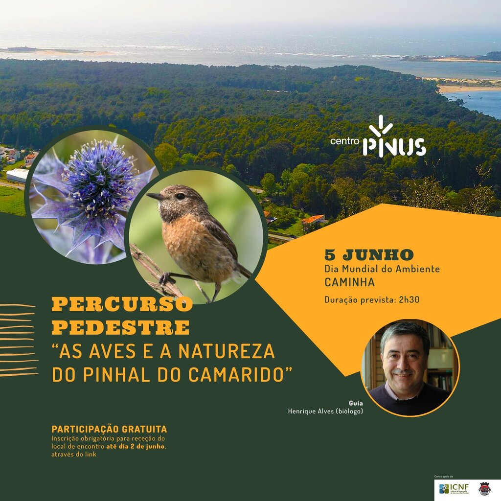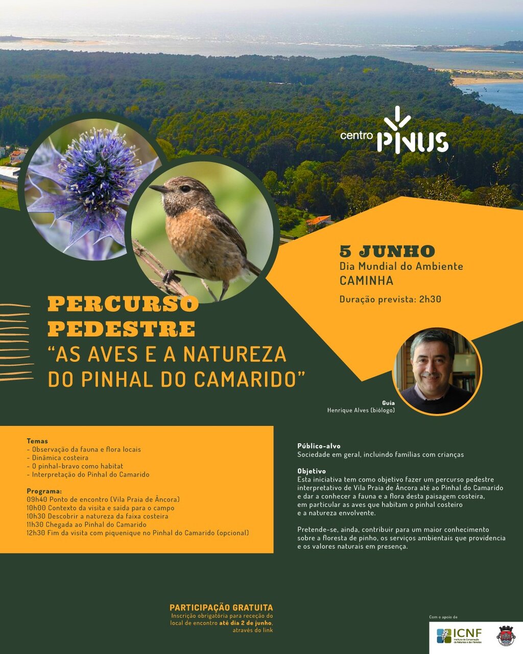 O Centro PINUS assinala o Dia Mundial do Ambiente, no dia 5 de junho, com o percurso pedestre “As aves e a natureza do Pinhal do Camarido” dirigido à sociedade em geral, incluindo famílias com crianças. Este evento tem o apoio do ICNF e do Município de Caminha.