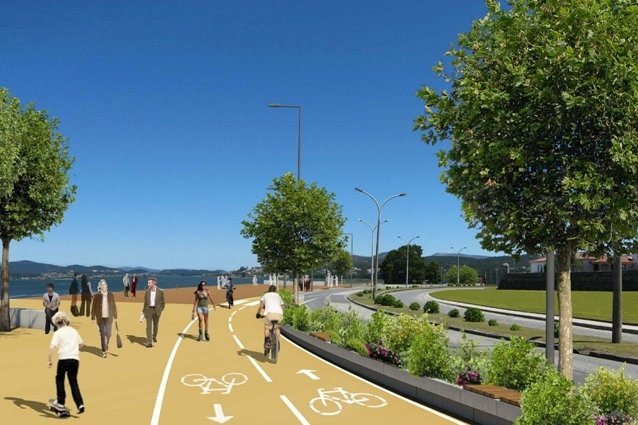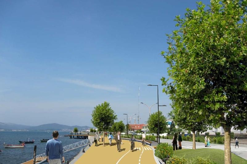 \r\nAs opções construtivas da proposta são: os pavimentos serão revestidos com betuminoso pigmentado nos passeios, cubo de granito nas passadeiras e áreas de estacionamento, e sempre que possível aproveitadas as guias de granito com reposição de novas sempre que necessário. O pavimento em betuminoso da EN13 aplicado pelas Estradas de Portugal será mantido, por se tratar de uma área muito recentemente intervencionada, havendo casos pontuais de correção, nomeadamente pelas baias para paragem de transportes coletivos e nos casos particulares ao longo do Largo da Feira e Bairro dos Pescadores, de onde resultará o alargamento do passeio, para 4 a 7 metros de largura e que inclui a travessia da ecovia.
