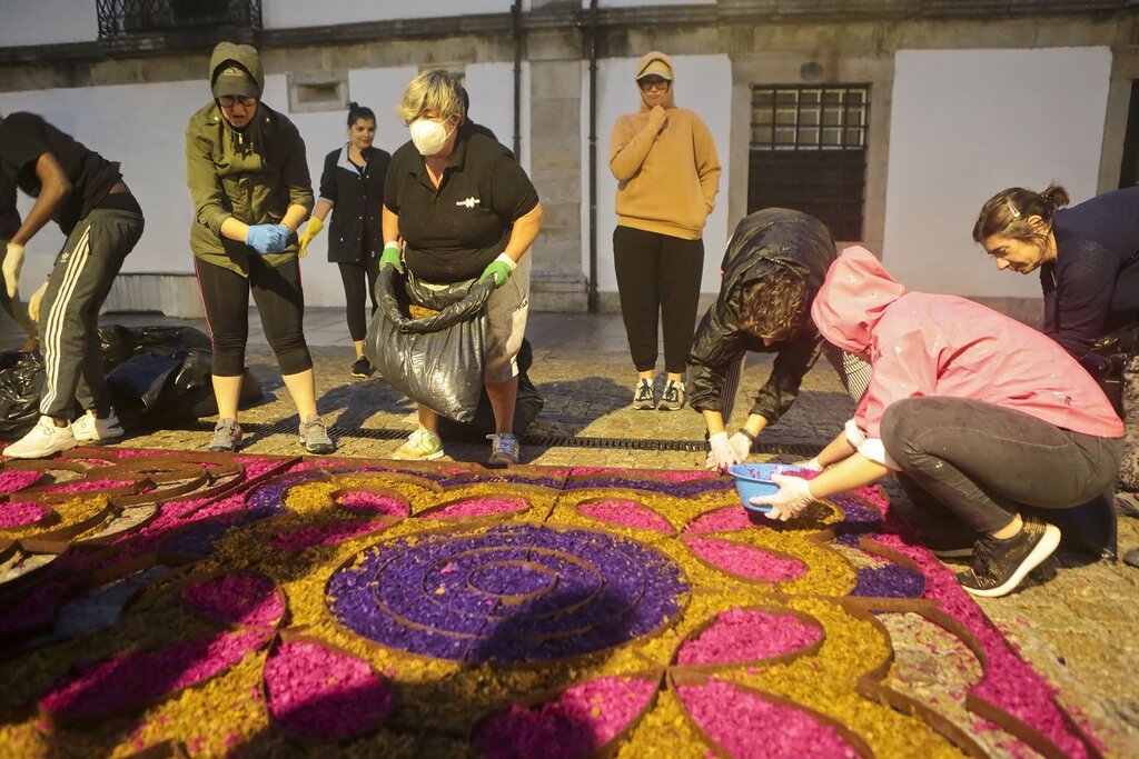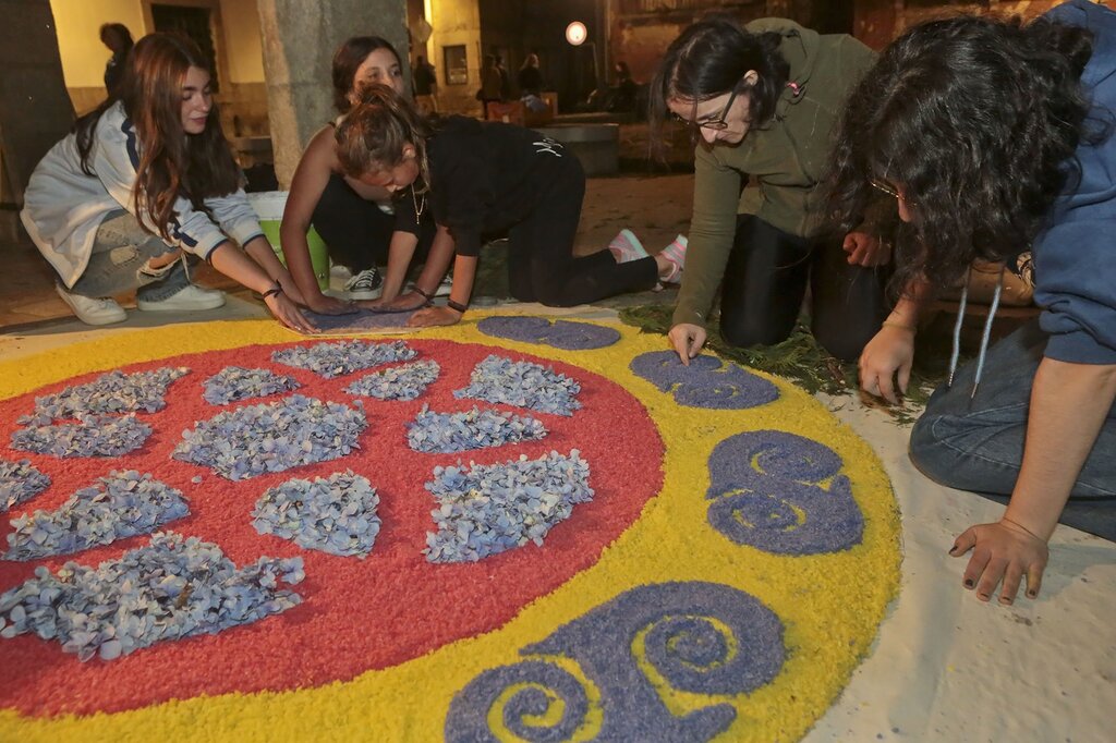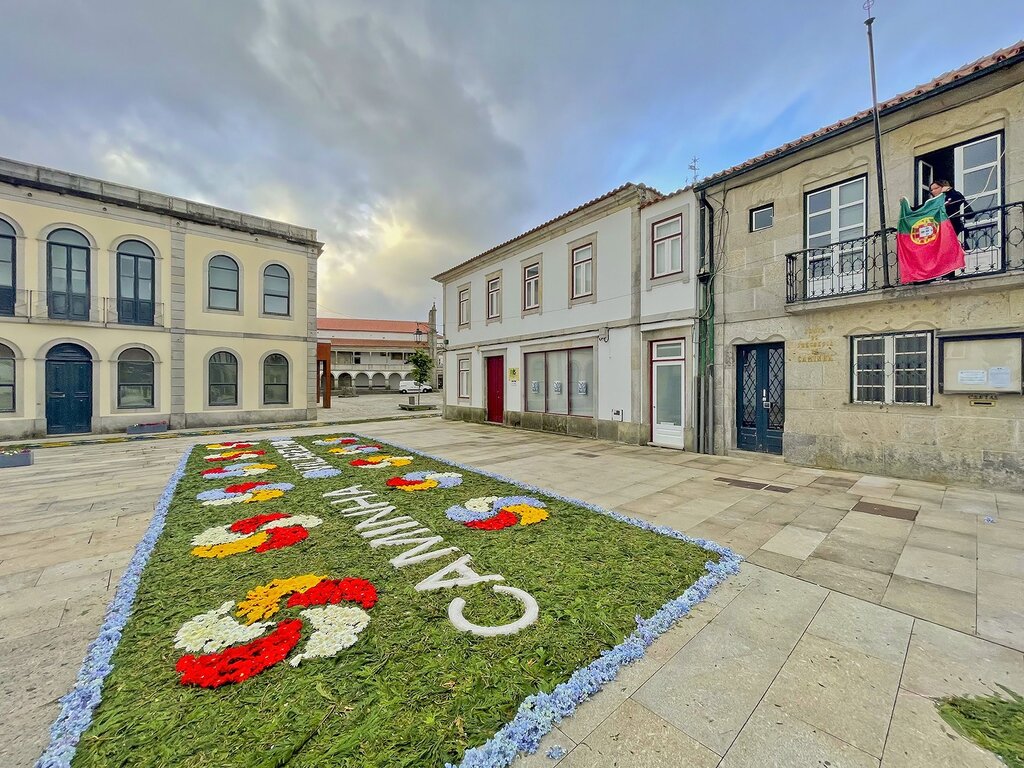 A Solenidade do Corpo de Deus comemora-se hoje no concelho de Caminha recuperando a tradição dos tapetes de flores que, desde a noite de ontem e durante a madrugada de hoje, foram confecionados pelas comissões de rua. Este ano, a Câmara Municipal convidou a comunidade ucraniana a participar e elaborar o tapete no espaço em frente aos Paços do Concelho.