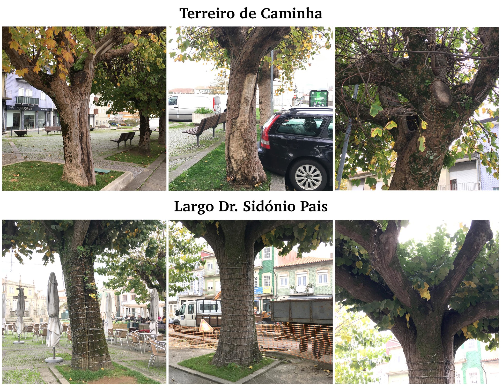 O Município realizou uma avaliação das árvores no Terreiro de Caminha e no Largo Dr. Sidónio Pais. Terão de ser abatidas 2 Tílias (Tilia tomentosa) no Terreiro e 3 Plátanos bastardos (Acer pseudoplatano) no Largo Dr. Sidónio Pais. Estas estão no fim da sua vida útil, encontrando-se muito debilitadas e em risco de queda. São um perigo para quem circule no espaço público.