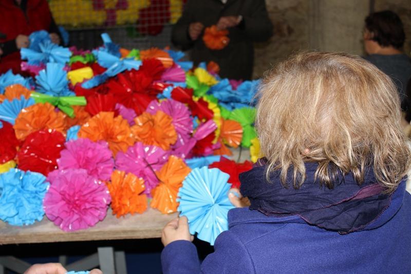 \r\n“Já fizemos algum trabalho, alguns preparativos, mas isto demora realmente muitos meses e todos os dias a trabalhar. A população ajuda, esta comunidade é fantástica”, diz Eugénia. “Precisamos de muita gente. Temos um grupo de 60 a 70 pessoas que nos ajudam. Estão divididos em dois grupos, um grupo que faz as ornamentações e um grupo que faz as maias, que já está connosco há 28 anos”, acrescenta. É um trabalho minucioso e que os voluntários reconhecem como difícil, mas que o fazem com muito gosto, em prol da freguesia. De facto, a participação de todos importa já que, como explica Carlos Castro, a maior participação de pessoas pode levar a que o trabalho fique concluído mais depressa e assim seja possível desenvolver outras ideias e realizar outras ornamentações.