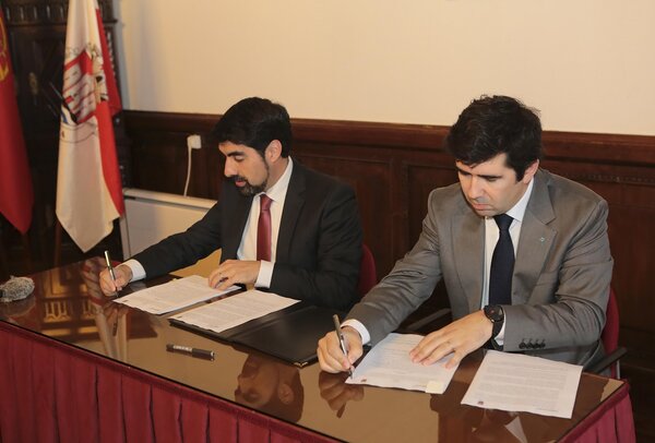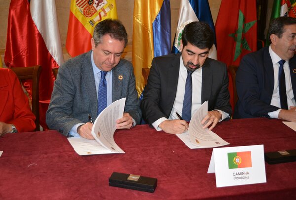 Miguel Alves, presidente da Câmara Municipal de Caminha e Juan Espadas Cejas, alcalde de Sevilha, assinam ...
