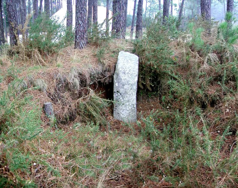 É bastante evidente o negativo daquilo que corresponderá a uma violação ocorrida num momento incerto no monumento, do qual não remanesceram quaisquer esteios que pudessem confirmar a existência primeva de câmara sepulcral de tipo dolménico, com ou sem corredor, razão pela qual se coloca a hipótese de estar-mos em presença de um local de enterramento em "fossa". Não obstante, foi precisamente na zona da cratera que se recolheu o "[...] único espólio significativo [...]." (Id., Idem, p. 17) constituído por lascas de quartzite, seixos afeiçoados e alguns fragmentos de cerâmica lisa e com decoração campaniforme, de tipo pontilhado marítimo.