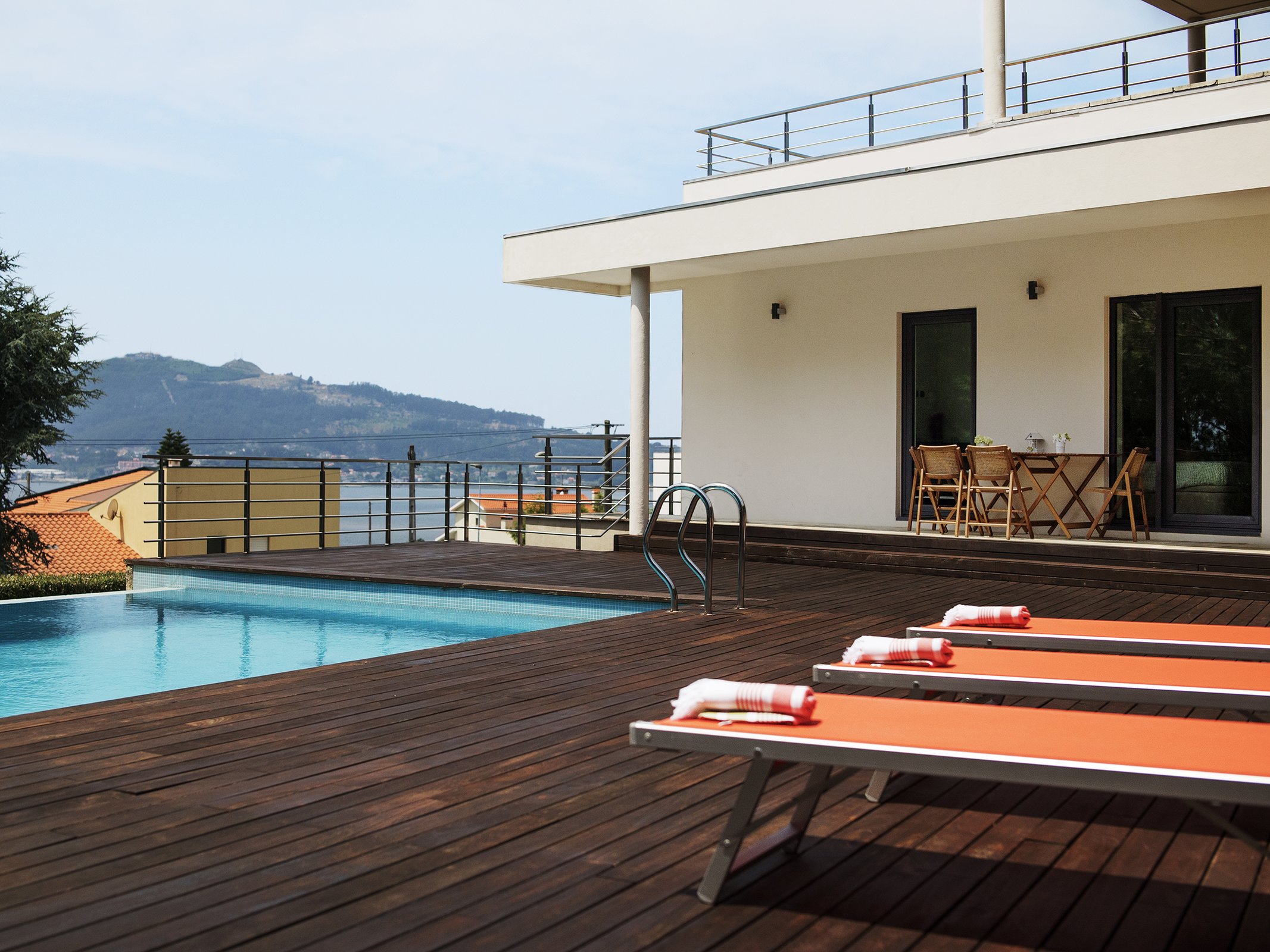 Cozinha equipada com frigorífico, congelador, micro-ondas, máquina lavar louça, placa elétrica, torradeira. Lavandaria com máquina de lavar roupa e estendal. Alarme central. Piscina com espreguiçadeiras e pufes.