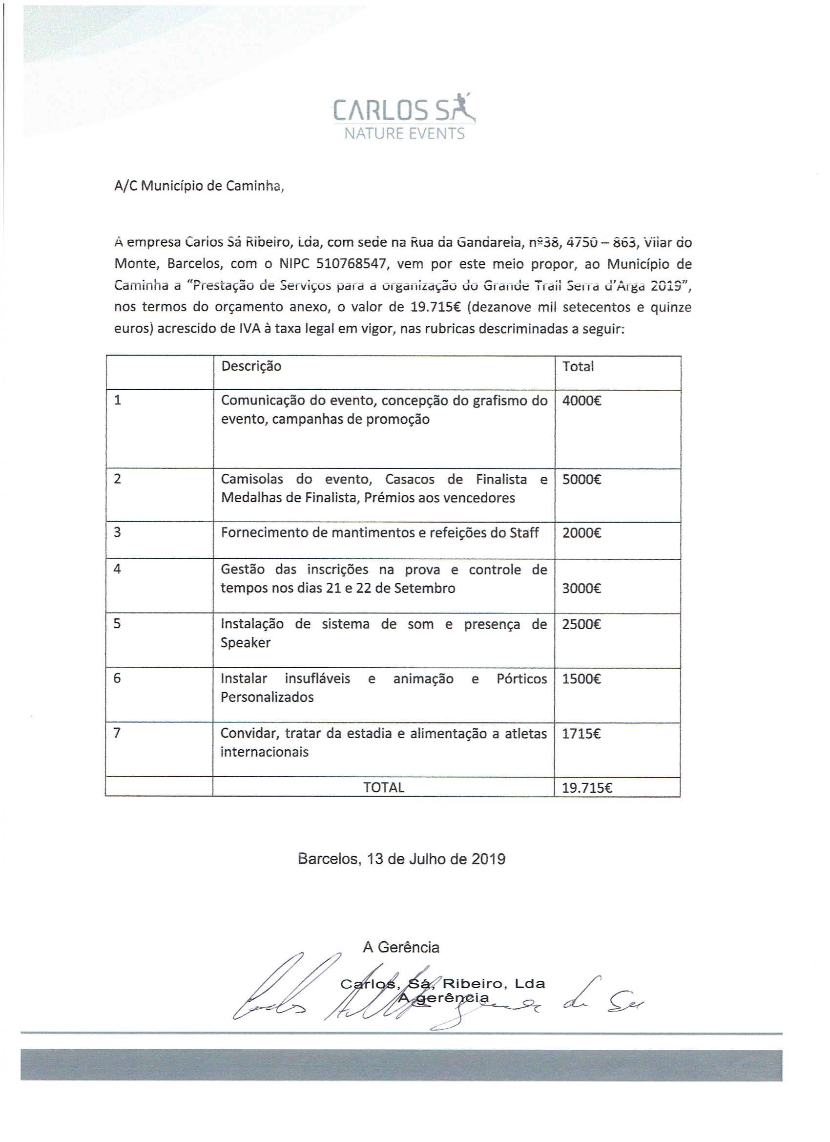 Prestação de Serviços para Organização do Grande Trail da Serra D’Arga - 2019
