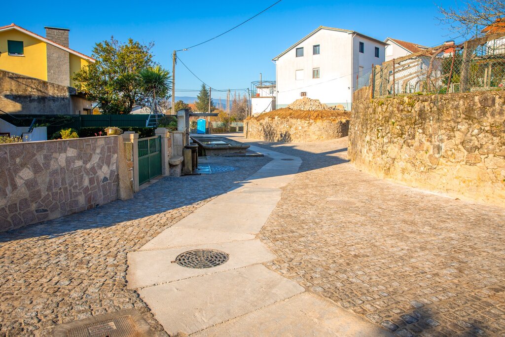 Finalmente, foi pavimentado todo o arruamento em cubo de granito, com junta argamassada, melhorando as condições anteriormente existentes, que apresentava pavimento em calçada a portuguesa, tendo inclusivamente sido pavimentada a zona contigua ao tanque de lavar, que ainda era em terra. Aproveitámos ainda para retificar a escada em pedra de ligação da Rua da Fonte da Rajada à Rua João da Costa e Silva, onde vários elementos foram arrastados pelas águas superficiais.